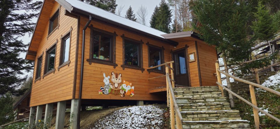 Для наших найменших гостей працює дитяча хатинка з нянею-аніматором. Проводяться цікаві ігри, майстер-класи та перегляд дитячих мультфільмів. Ви можете залишити дітей (від 4-х років). до 12років. Дитяча хатинка працює з 09:00 до 18:30, перерва 14:00-15:00